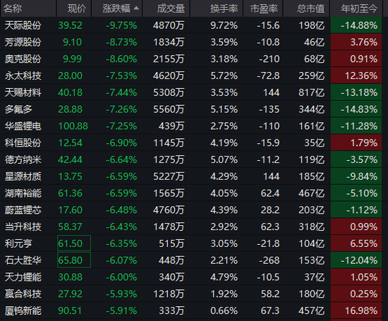 锂电概念股大幅走低